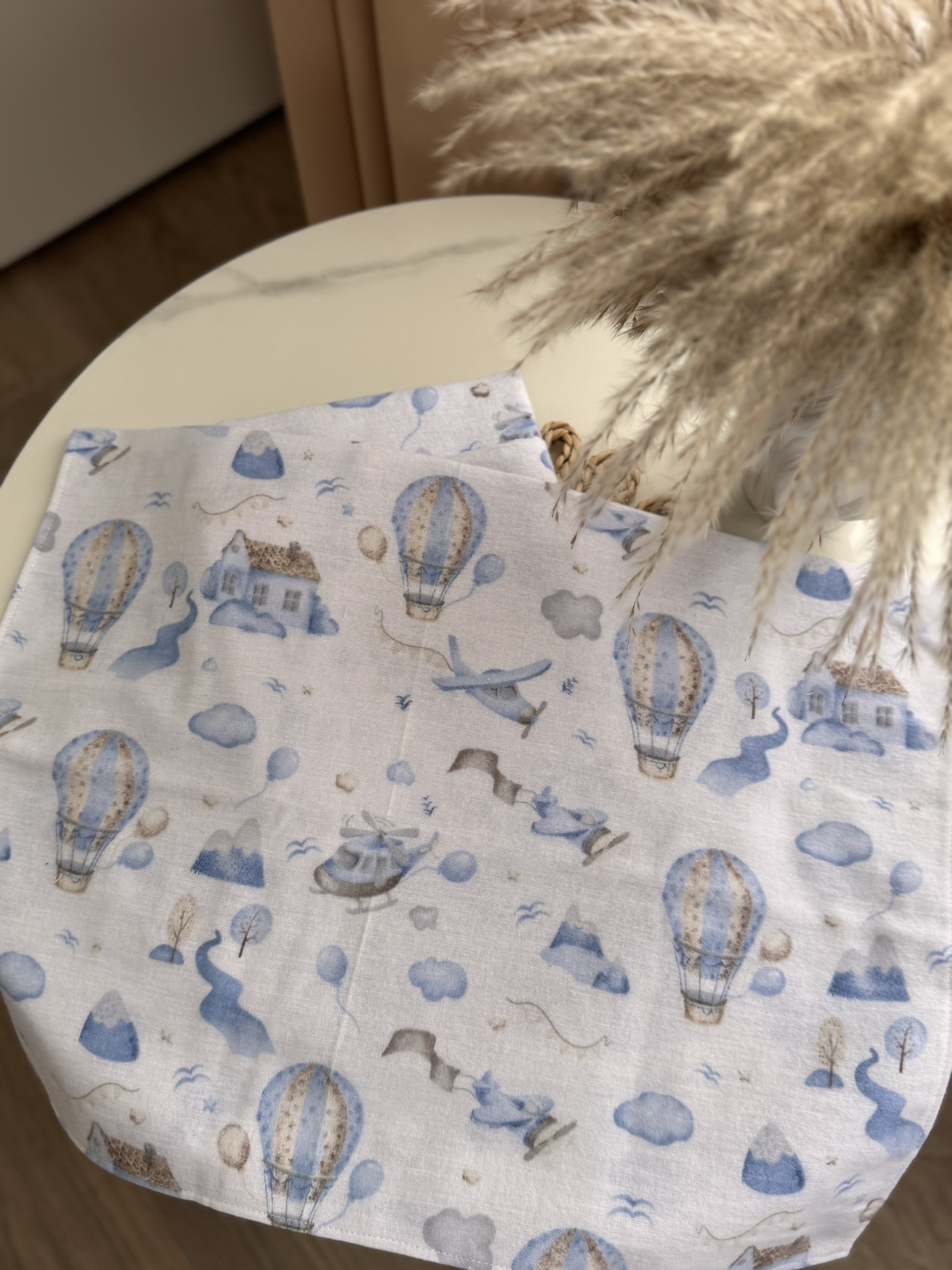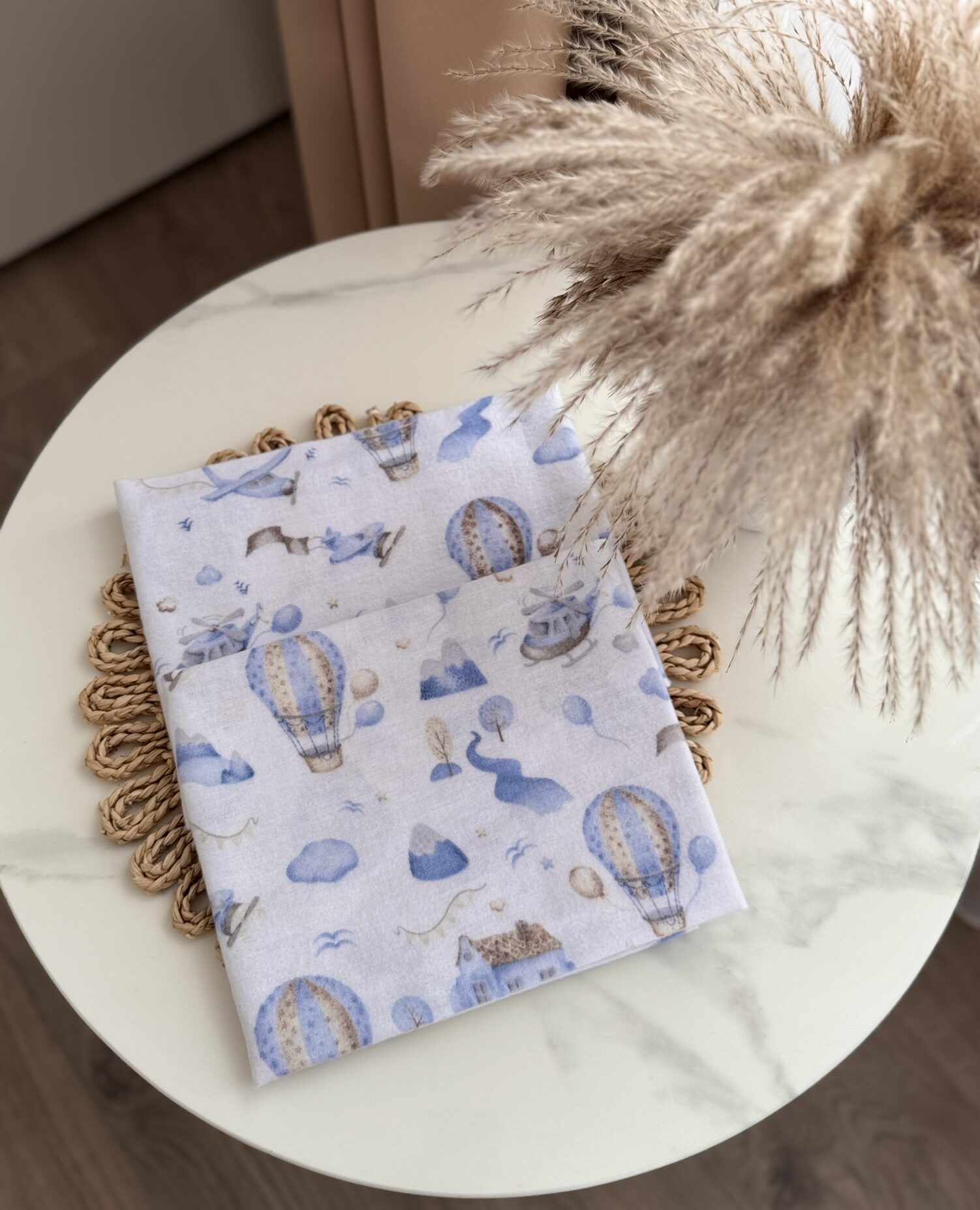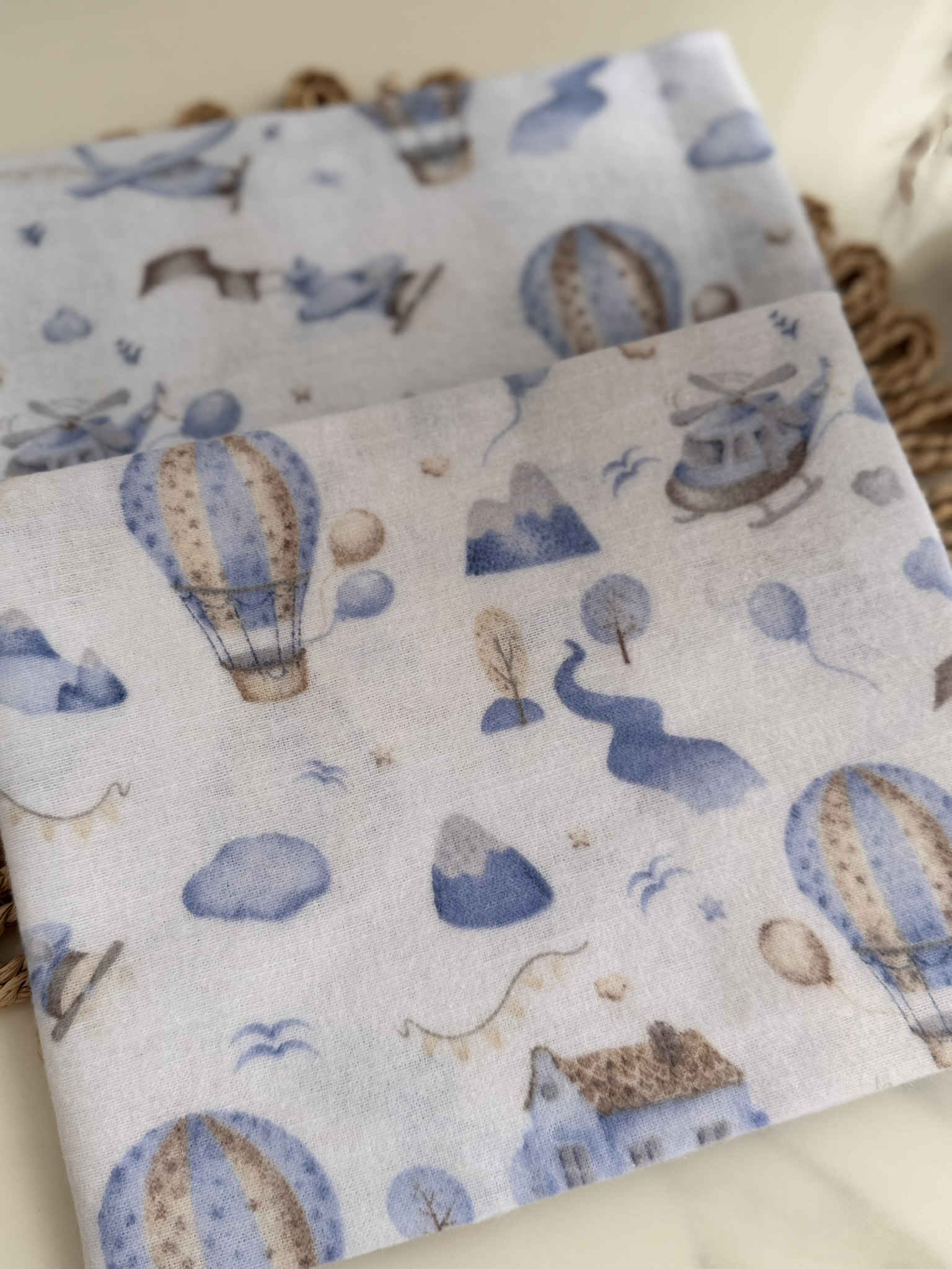 Flaneliniai vystyklai kūdikiams – 2 vnt. rinkinys su oro balionų raštais.