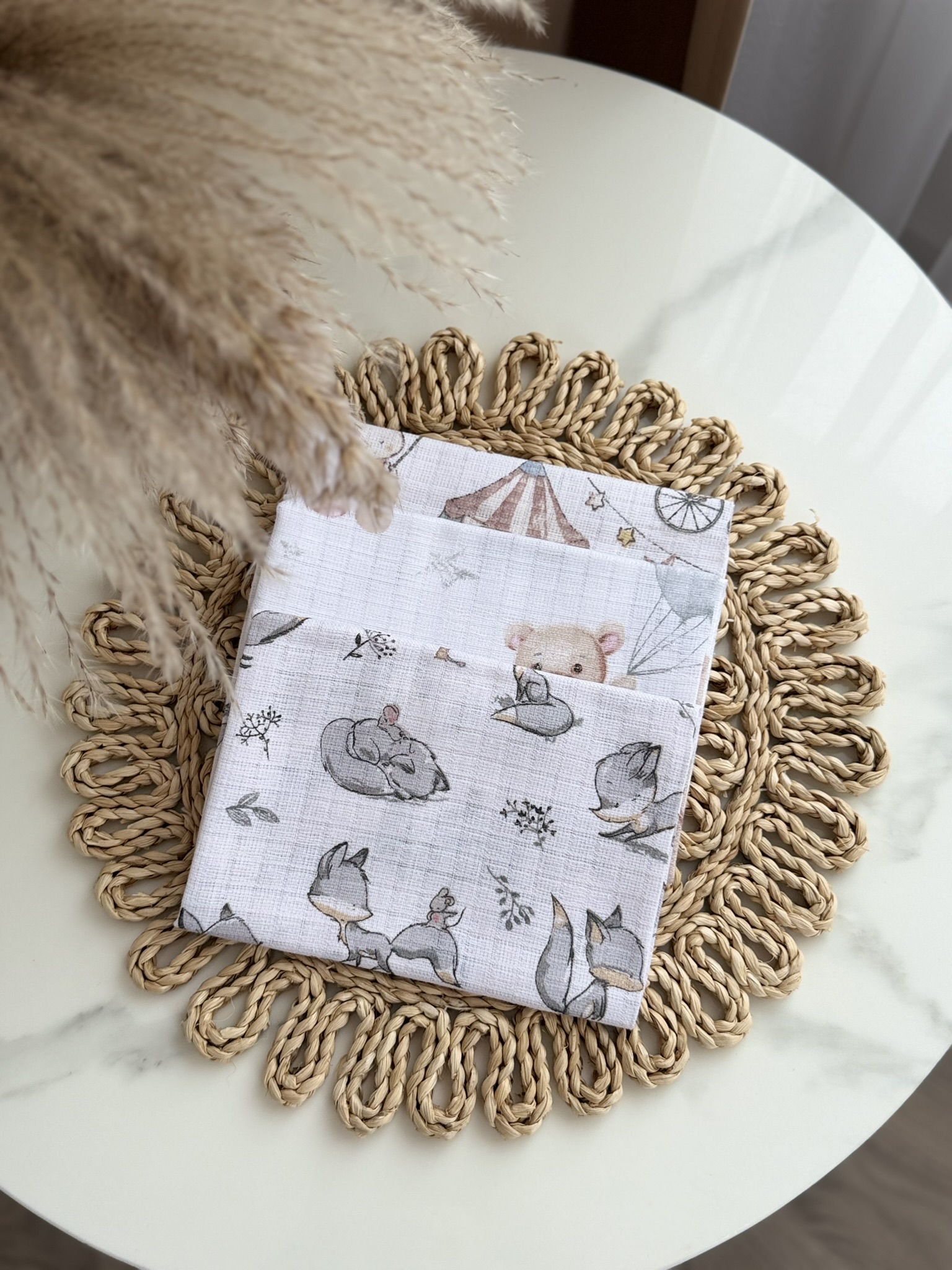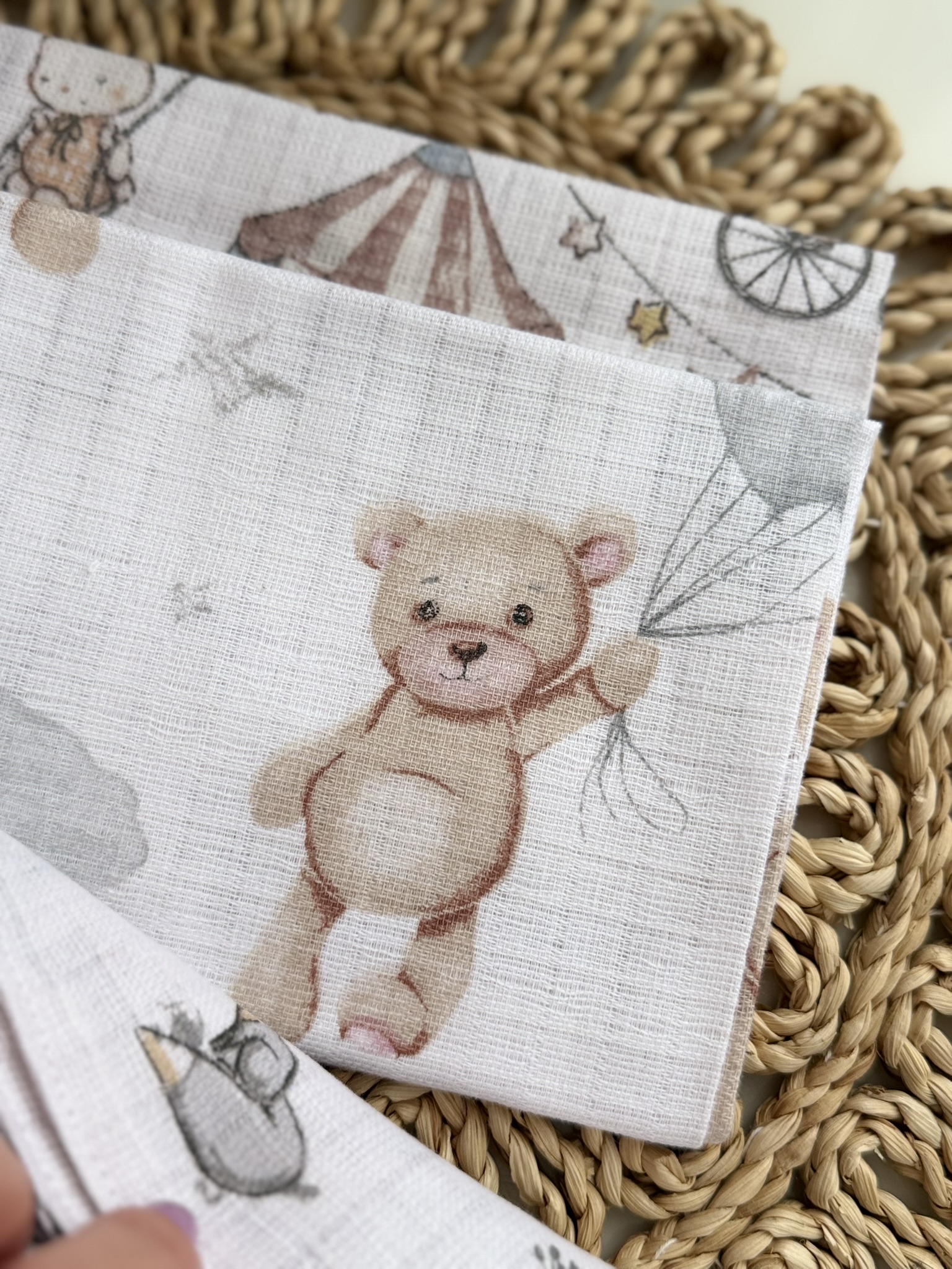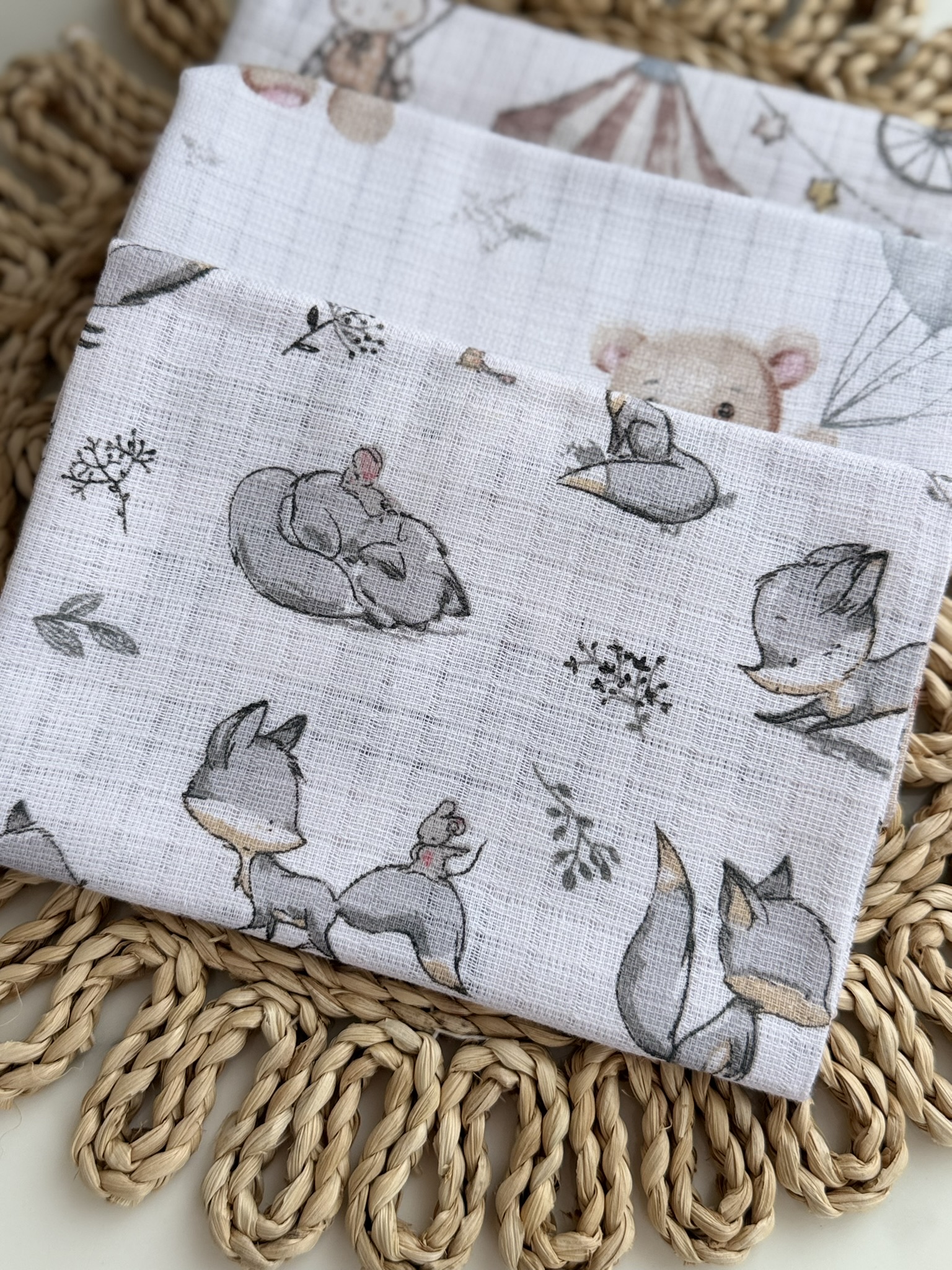 Rinkinį sudaro: 3 dvigubi merliukai su skirtingais raštais