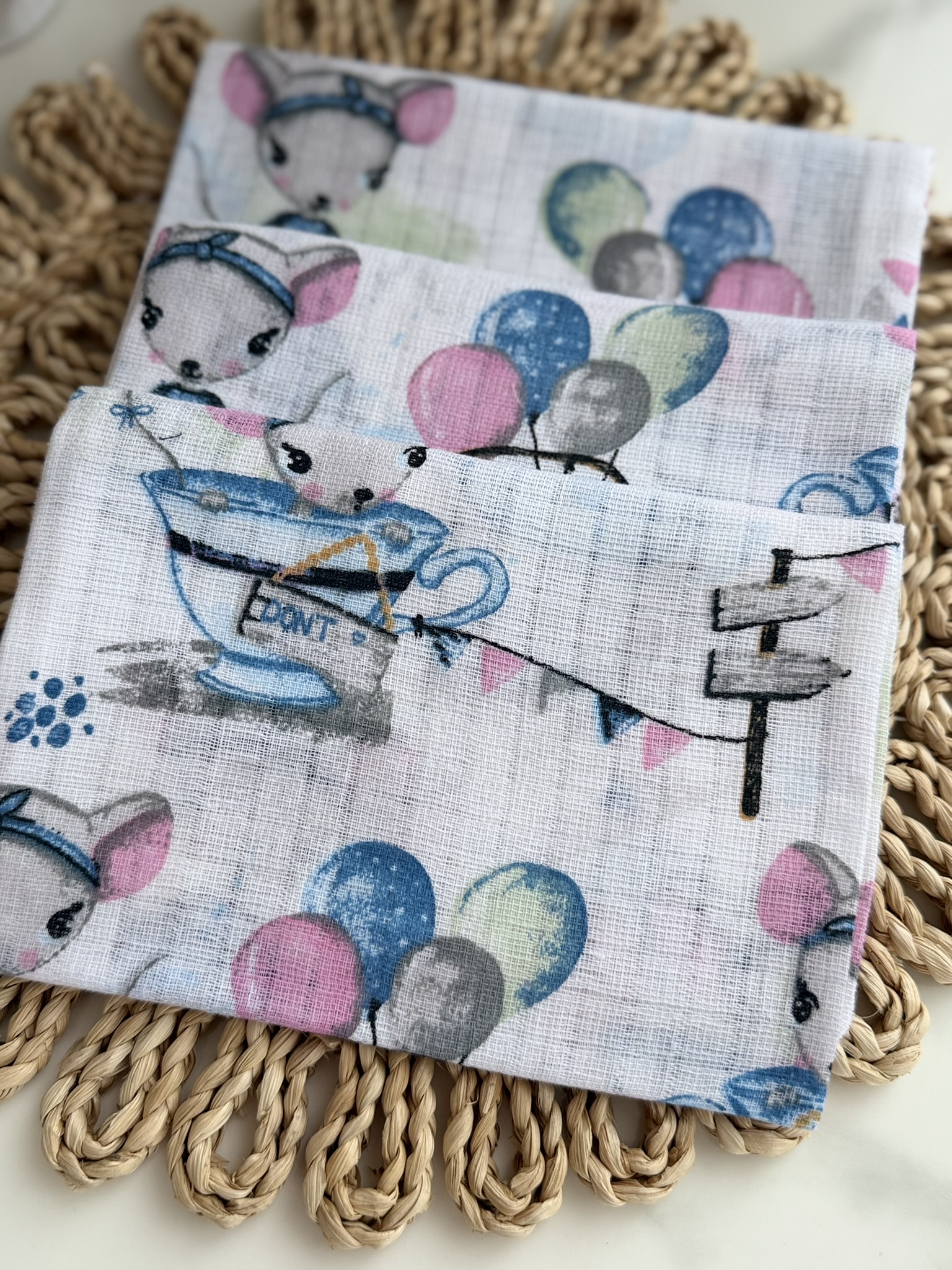 Rinkinį sudaro: 3 dvigubi merliukai su skirtingais raštais