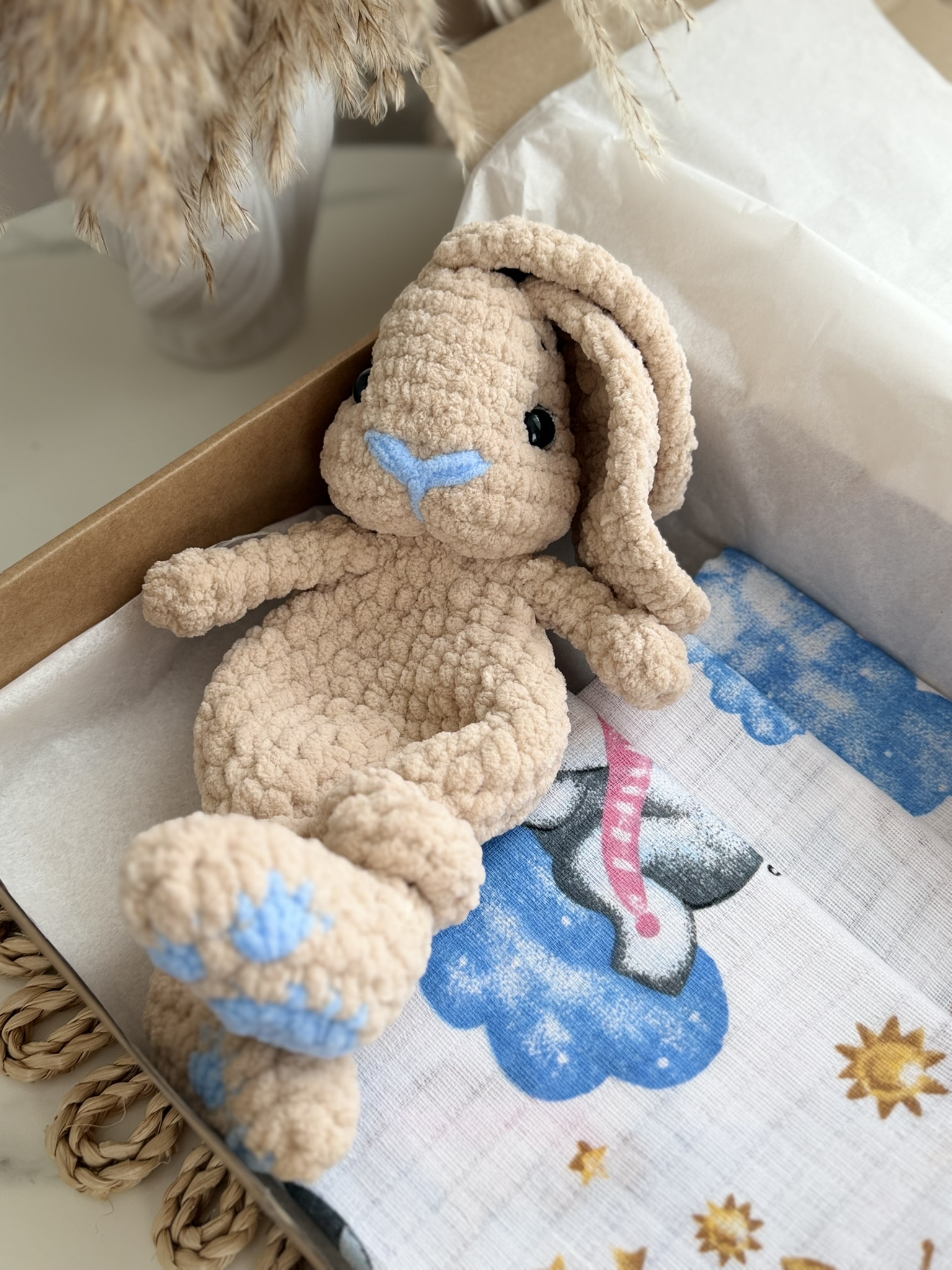 Švelnus rankų darbo migdukas zuikutis – tai pirmasis kūdikio draugas, skirtas jaukumui, saugumui ir ramiam miegui. Minkštas ir lengvai suimamas, suteikia mažyliui artumo jausmą bei padeda lengviau nusiraminti. Migdukas sukurtas taip, kad būtų patogus mažoms rankytėms – jį lengva sugriebti, laikyti ir prisiglausti.