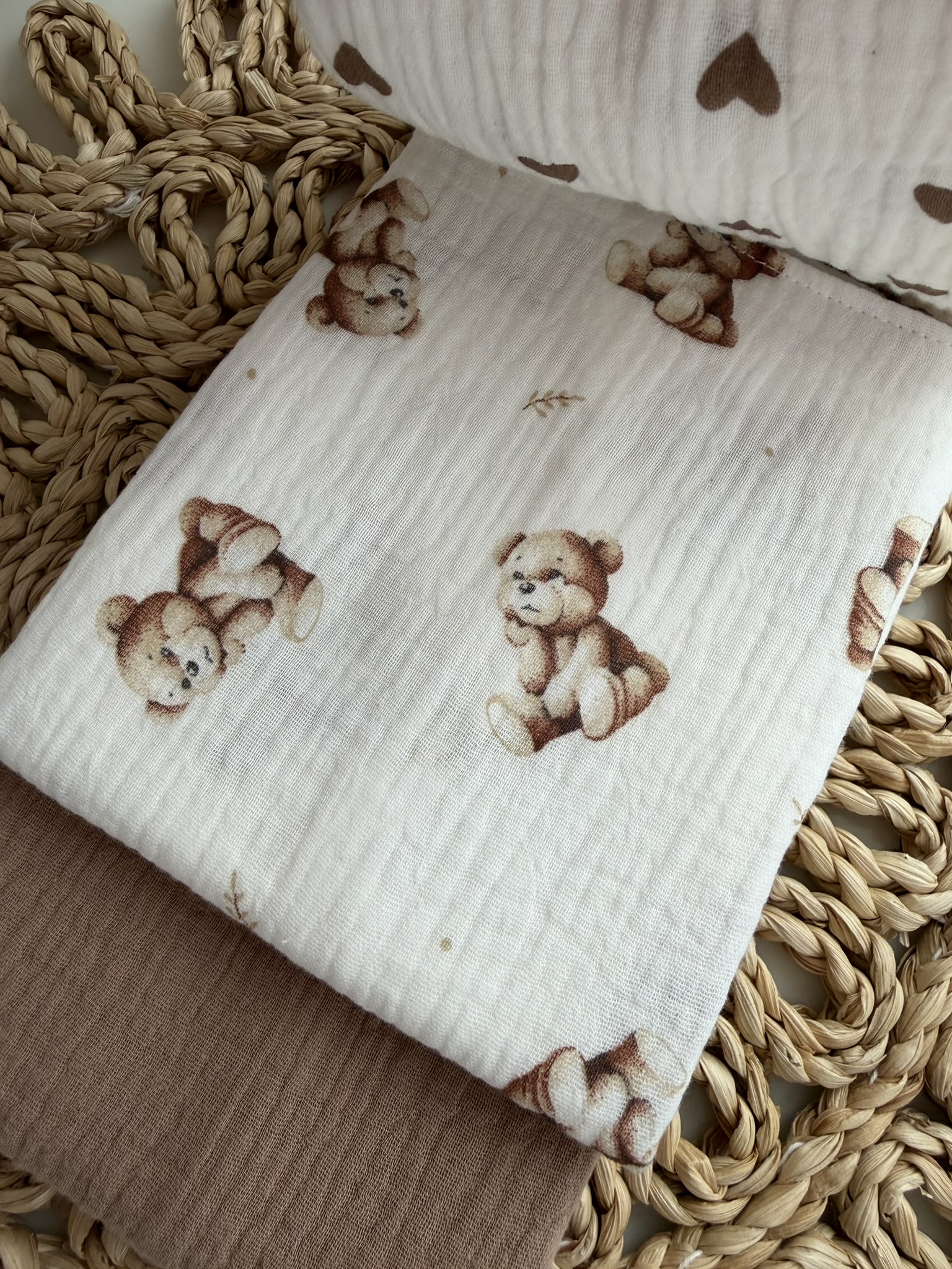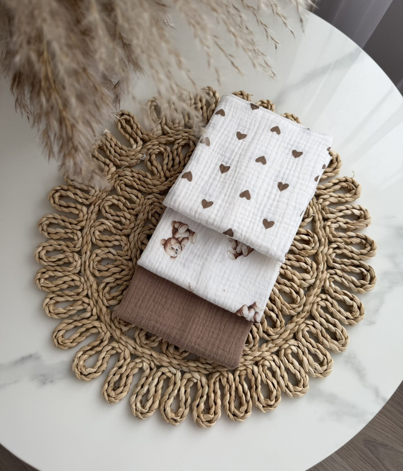 Rinkinį sudaro: 3 dvigubi merliukai su skirtingais raštais