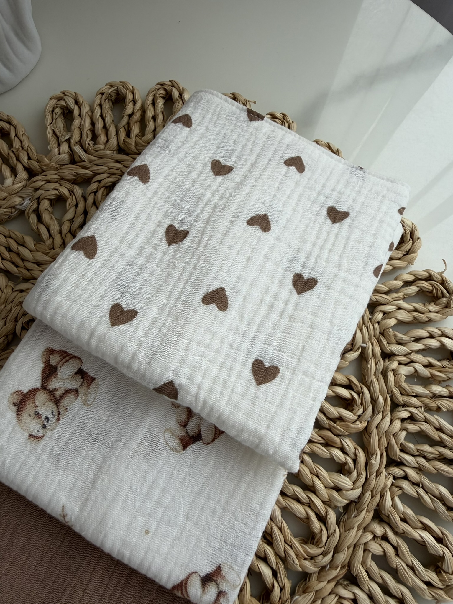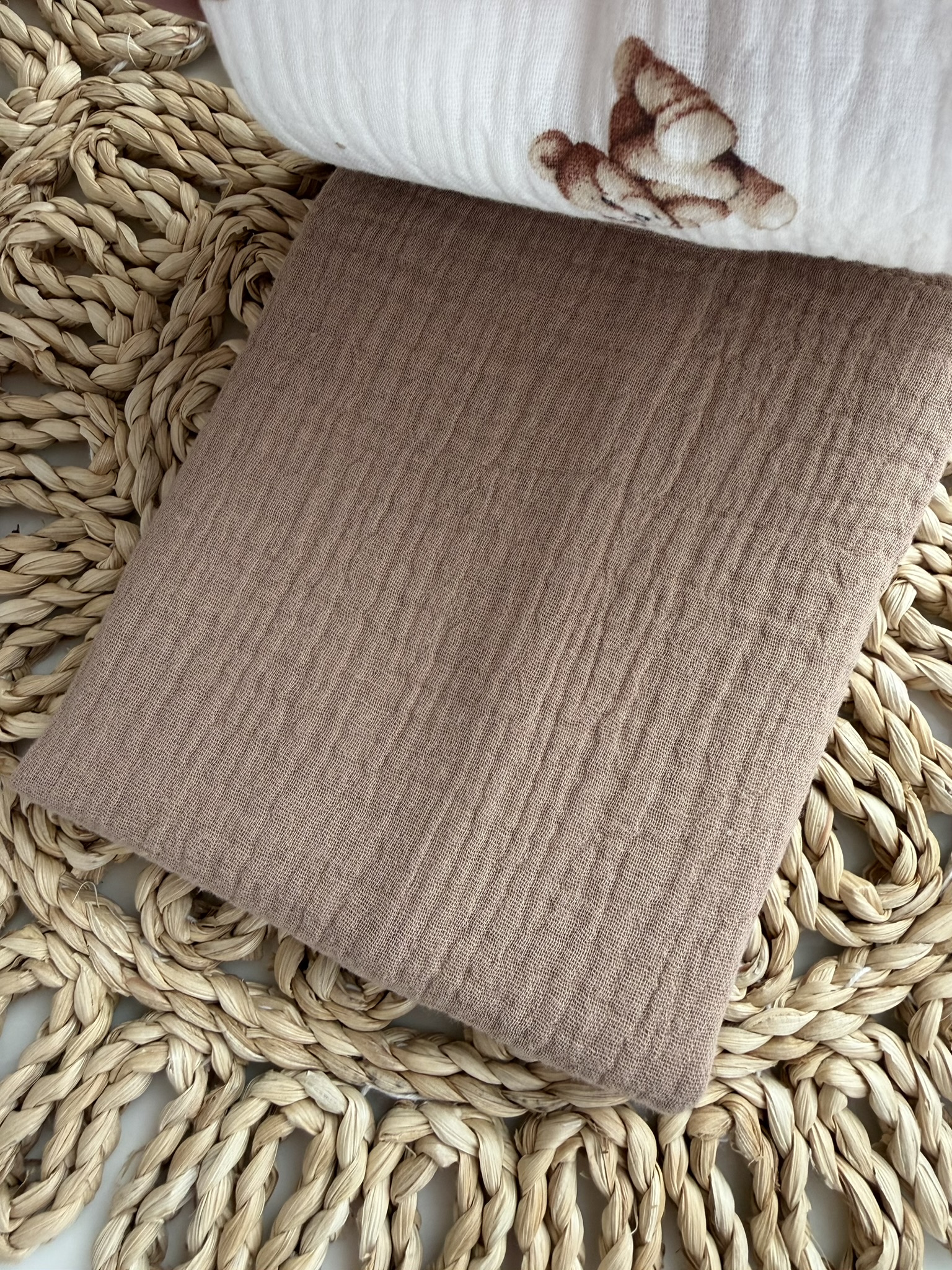Muslino merliukai kūdikiams pagaminti iš 100 % natūralaus medvilninio muslino – švelnaus, kvėpuojančio ir jautriai kūdikio odai tinkamo audinio. Muslinas yra lengvas, gerai sugeria drėgmę ir greitai džiūsta, todėl puikiai tinka kasdieniam naudojimui.