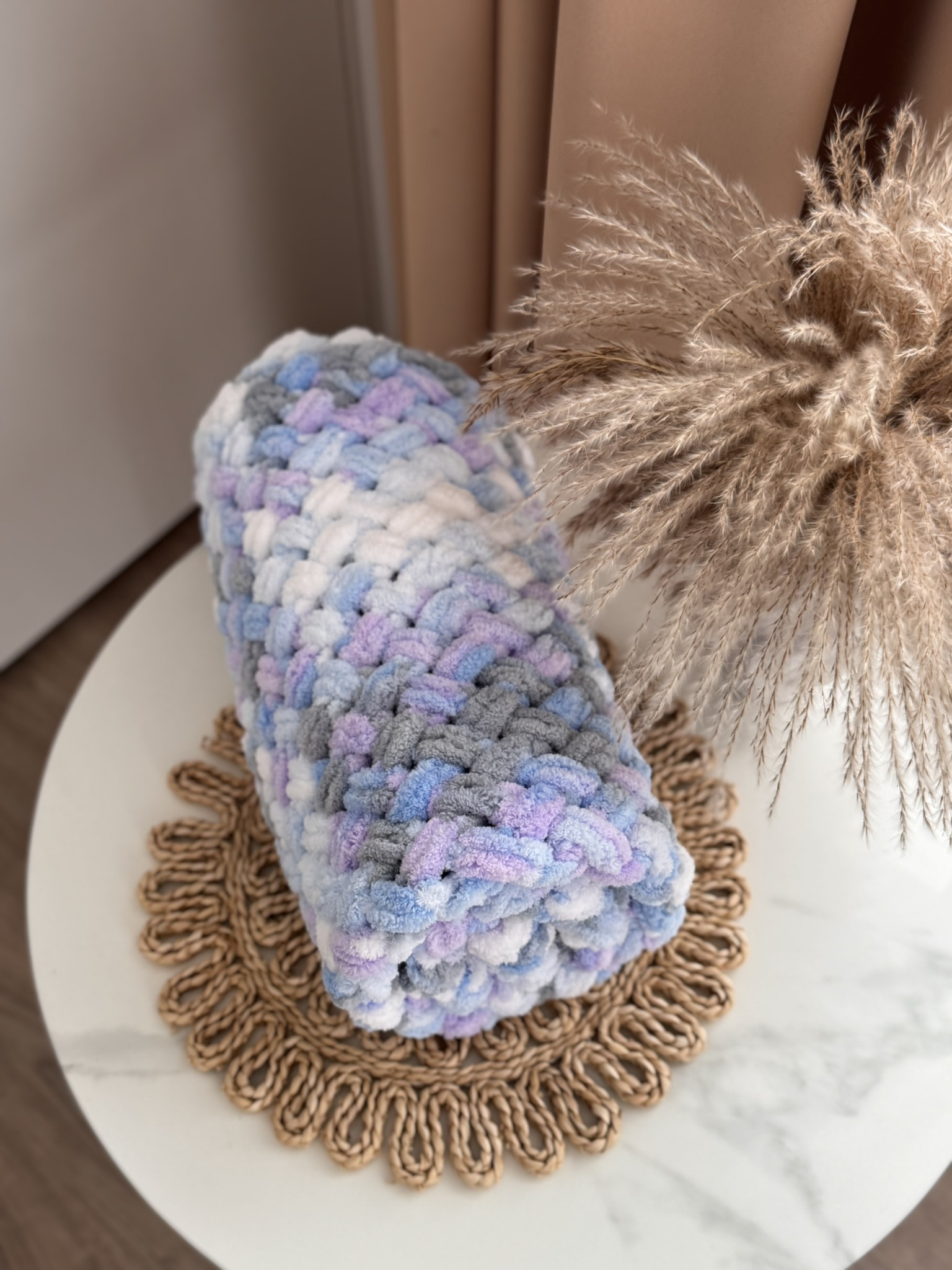 Būkite pirmas aprašęs “Puffy pledas – Margas alyvinis”